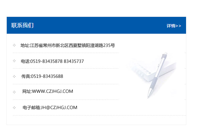 傳真:0519-83435688    郵編:213135    網址:WWW.czjhgj_com.shengyuseo.com    電子郵箱:JH@czjhgj_com.shengyuseo.com